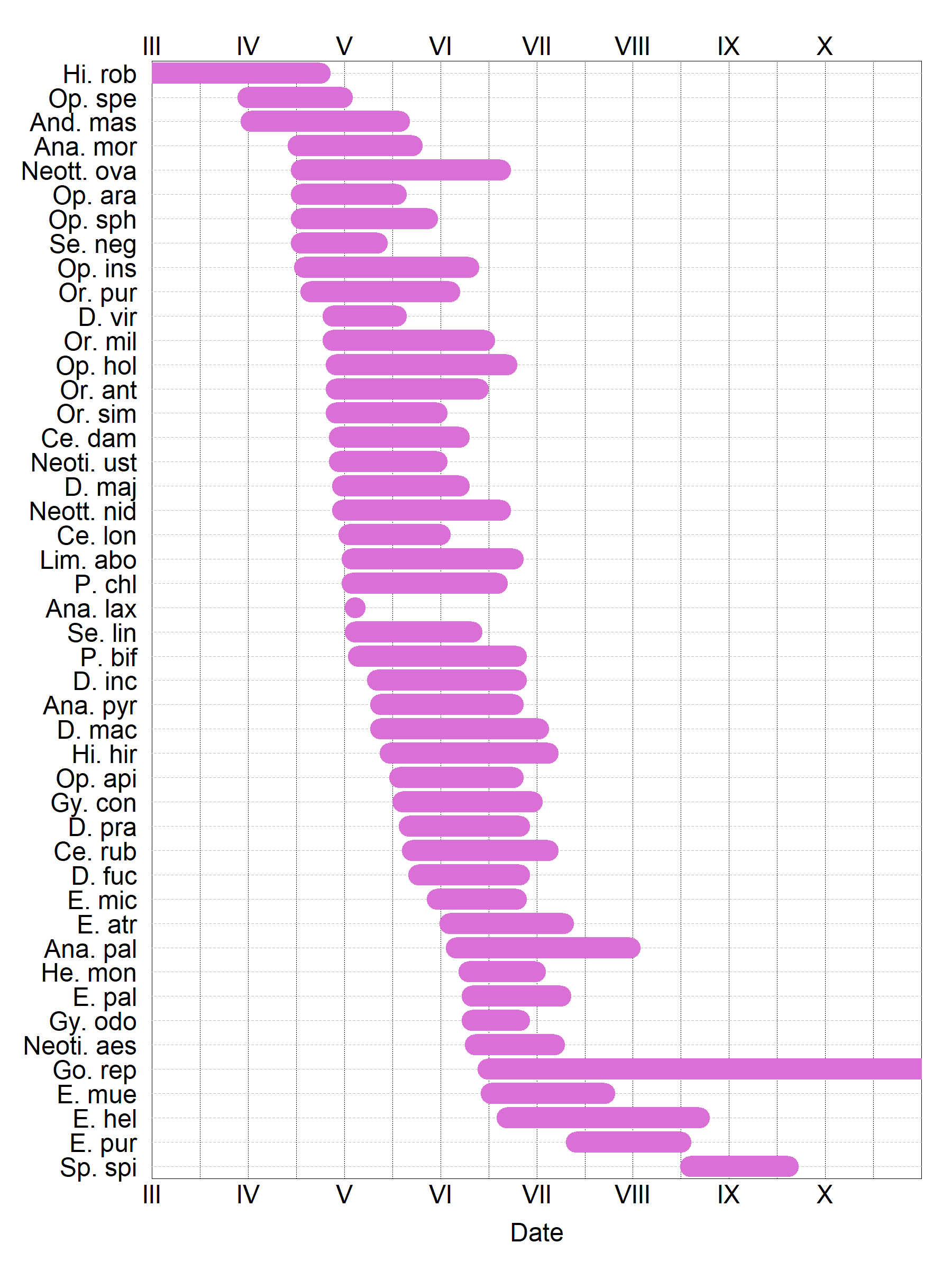 Les dates de début et de fin de floraison ont été estimées à partir des relevés de la base de donnée contenant les mentions “fleur” ou “floraison”.